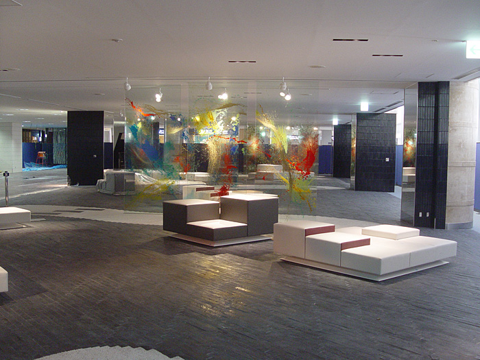 縦、横、高さからなる“三次元”に加えて、ハイテクと時間を飲み込んだ“四次元”のミュージアム。ミュージアムの語源は“宇宙”。重なり合う透明な色彩の世界の中で、人はアートを“見る”のではなく、自分自身がアートに“なる”。その一体感と感動の中で、創造という心のマグマが開かれる。